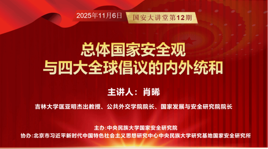 2025年11月6日上午,国家安全研究院以深入贯彻落实总体国家安全观为核心,聚焦国家安全学学科建设服务国家战略需求的重要性与迫切性,为明确国家安全学新时代使命、全面提升广大师生国家安全意识,特邀吉林大学公共外交学院院长、国家发展与安全研究院院长肖晞教授在海淀校区文华楼西区0709教室开展题为“总体国家安全观与四大全球倡议的内外统和”的专题分享会。本次讲座由中央民族大学国家安全学学科建设办公室主任吴雪主持。