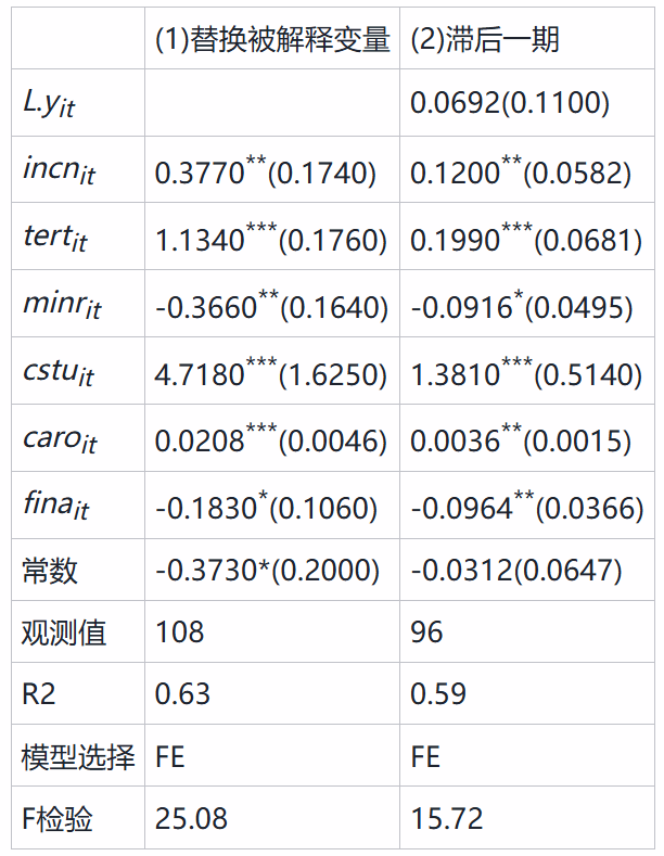 表4 基于替换被解释变量和引入被解释变量滞后项的稳健性检验结果